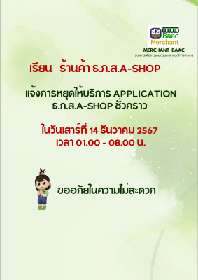 ธ.ก.ส.ขอปิดการให้บริการ application ธ.ก.ส.A-Shop วันที่ 14 ธันวาคม 2567 [11/12/2024]